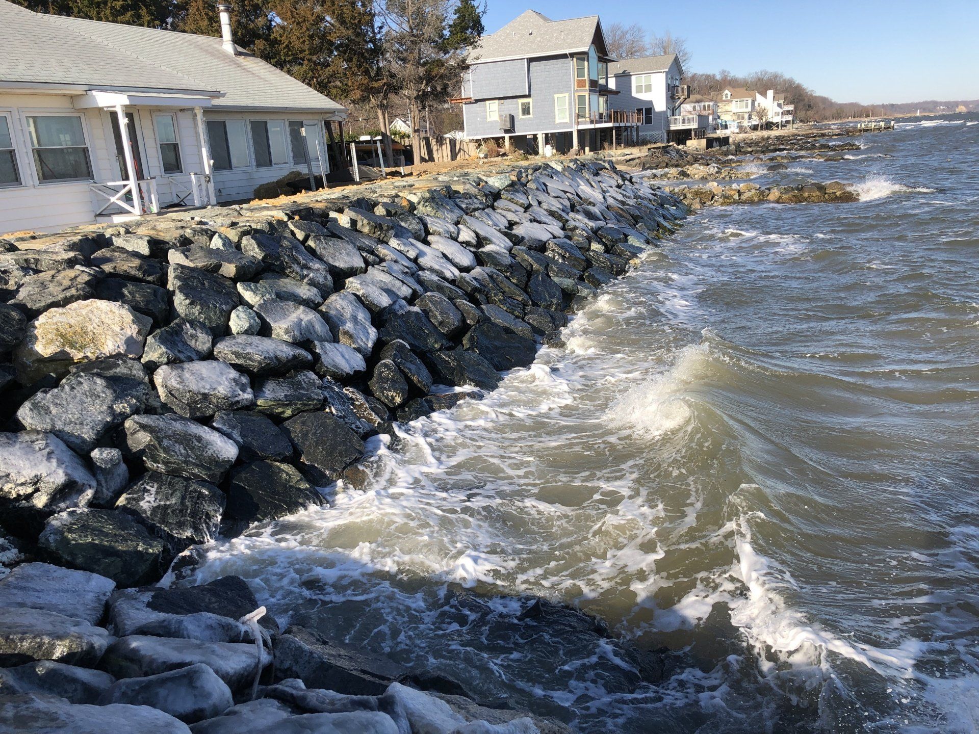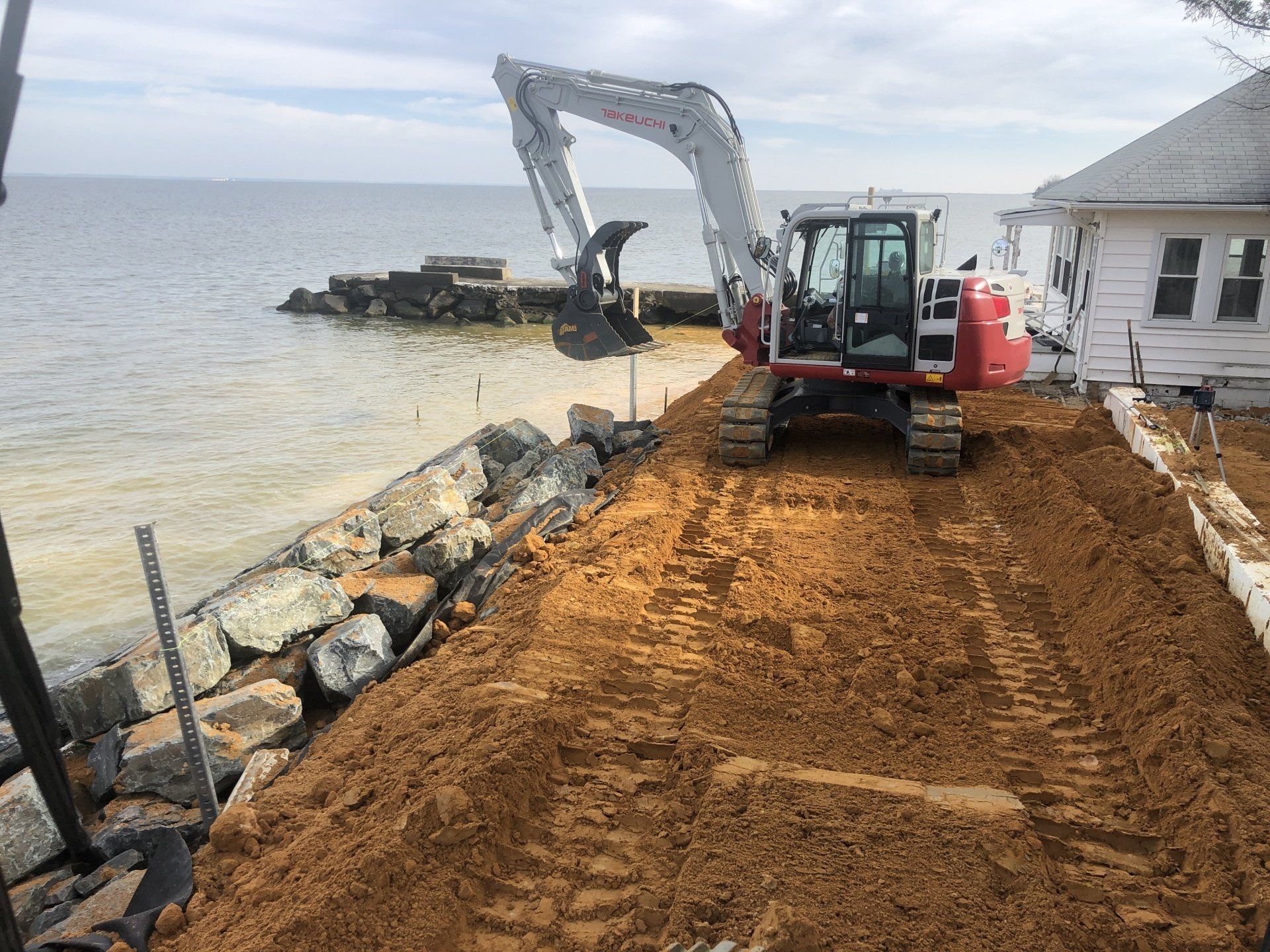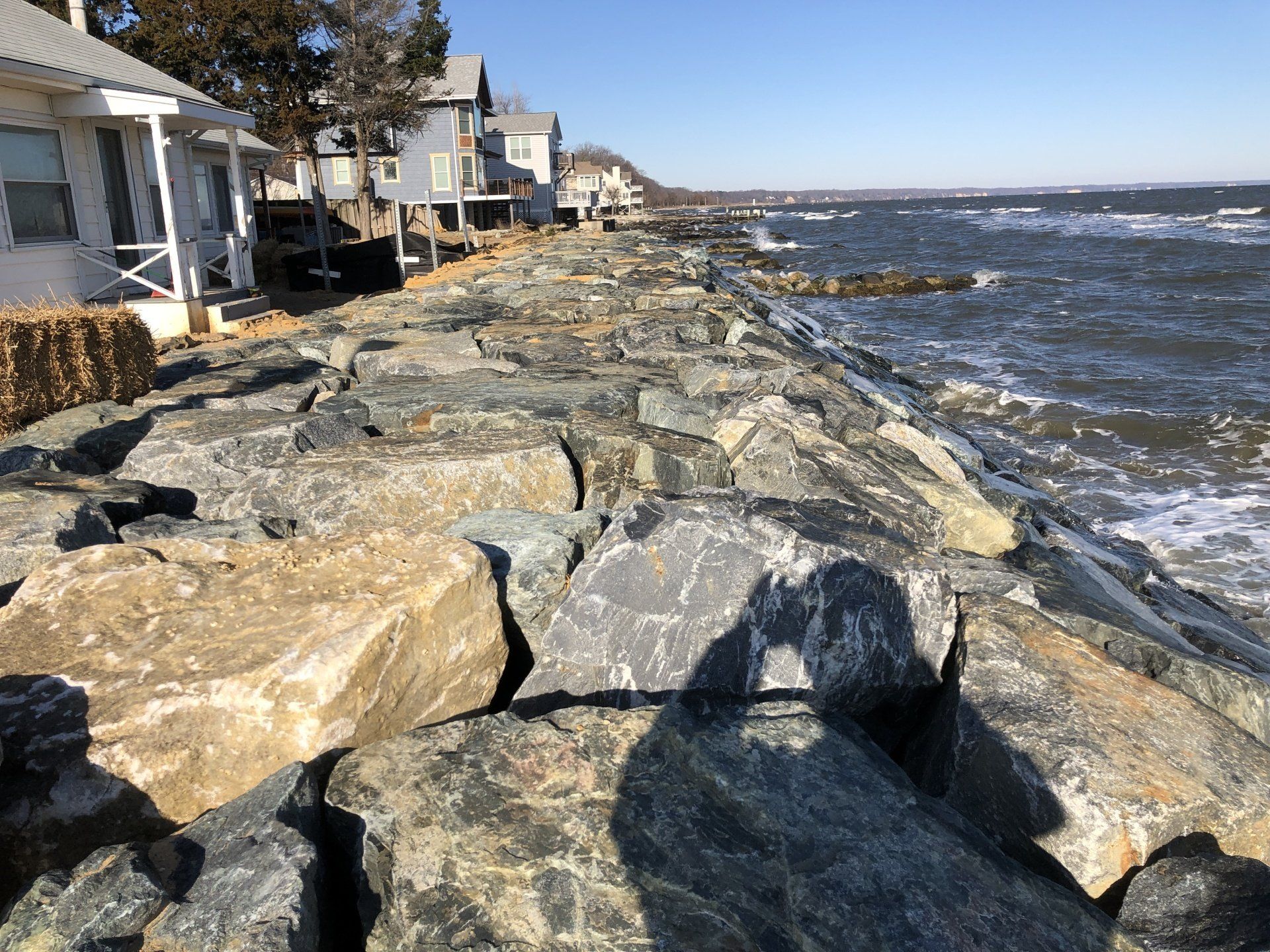A stone revetment is the best method to protect your shore from erosion. They are also the most effective structure for absorbing wave energy. Stone revetments are the most economical and quickest to install of all methods of erosion control. If you would like to learn more about any of the services we offer, please contact