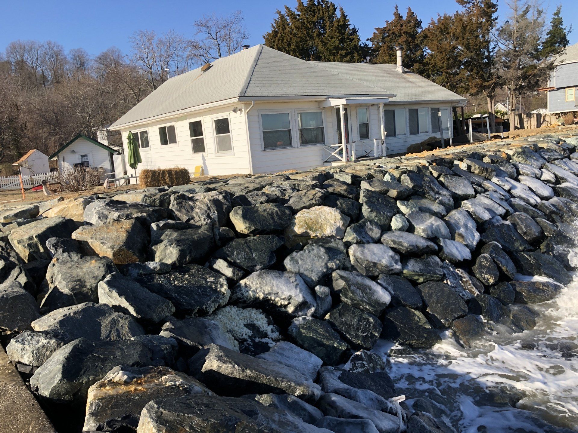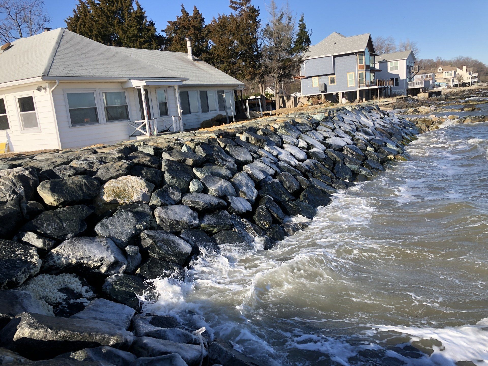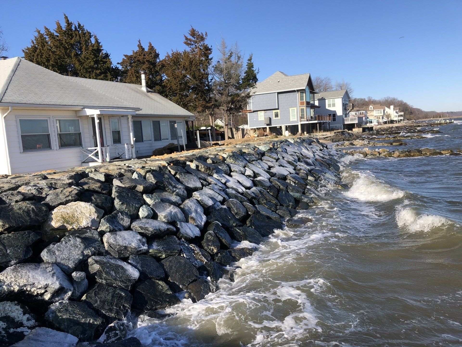 A stone revetment is the best method to protect your shore from erosion. They are also the most effective structure for absorbing wave energy. Stone revetments are the most economical and quickest to install of all methods of erosion control. If you would like to learn more about any of the services we offer, please contact